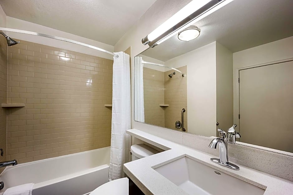 Our hearing accessible apartment-like suites feature a private bedroom with one king bed and flat-screen television plus a spacious living area with a sofa bed. A full kitchen provides a full-sized refrigerator, stovetop, microwave, dishwasher, pots and pans, utensils, plates and glasses, and ample counter space. Other features include complimentary WiFi, a large desk and premium movie channels.